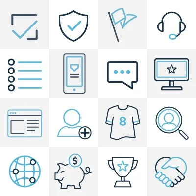 The content for the HQ product can be dense and in order to simplify the information I created a system of assets that when combined create a composition for users to easily comprehend. These collages typically consist of simple shapes and line work that are reminiscent of the lines used in various sports. Within these shapes and lines I added in UI elements in order to show the information for the tool or feature we want to show to the users. Then if applicable, I added users or characters that help show the real world application of the product in order to help users better relate to how they will interact with SportsEngine HQ.