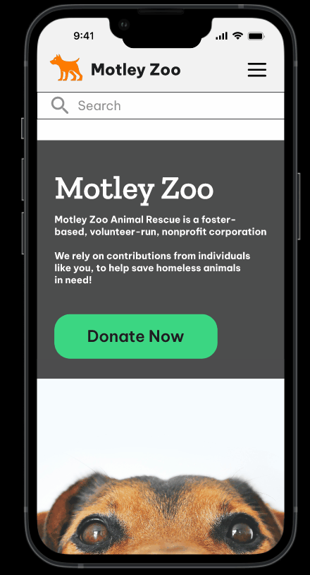 I believe that redesigning the main navigation and updating the UI will help animal lovers discover how they can easily adopt, foster, or donate, with Motley Zoo..